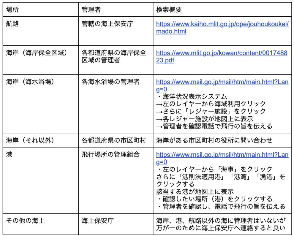 ・海岸や浜辺からの離発着=管理している市区町村の許可