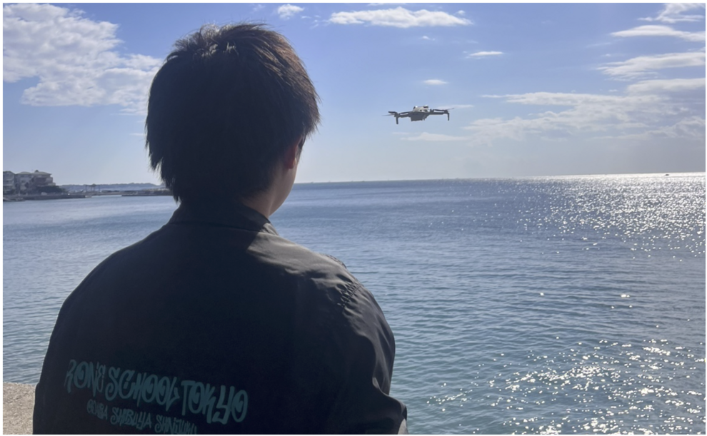 「海でドローンを飛行させる時障害物もないしセンサーがついているし安全でしょ。」