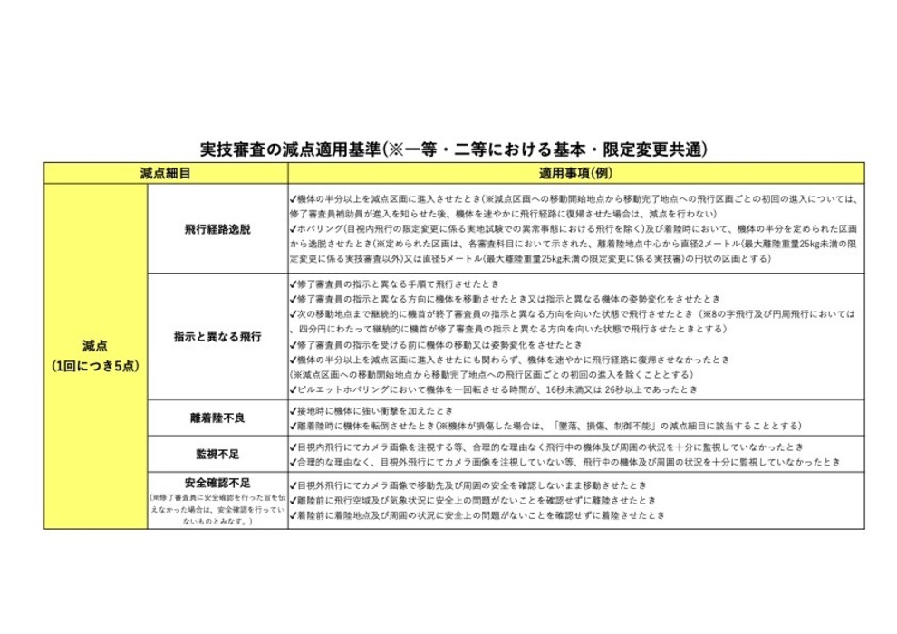 無人航空機二等の実技審査あるのは知っていて減点基準表などもみたことがあるけれど