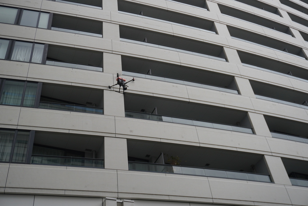 外壁のひび割れ(クラック)やタイルの浮きを正確に検出するためには、ドローンと壁面との距離を適正な距離に保つ必要があります。