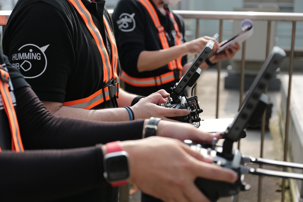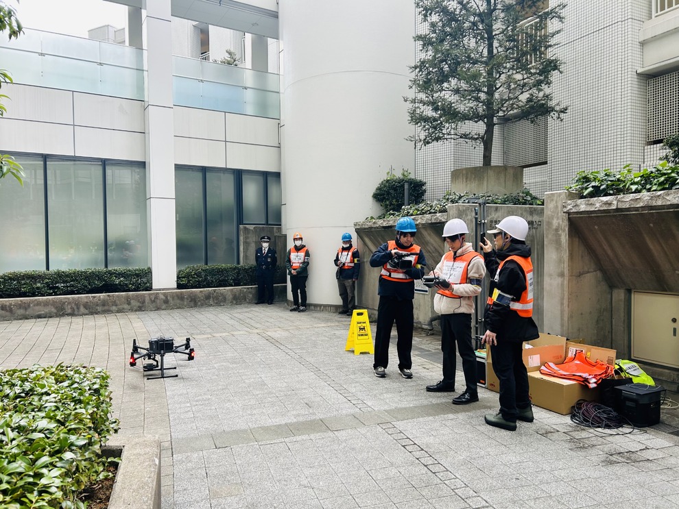 点検業務は、決してパイロット一人で行うものではありません。必ず「補助者(安全監視員)」とチームを組んで行います。