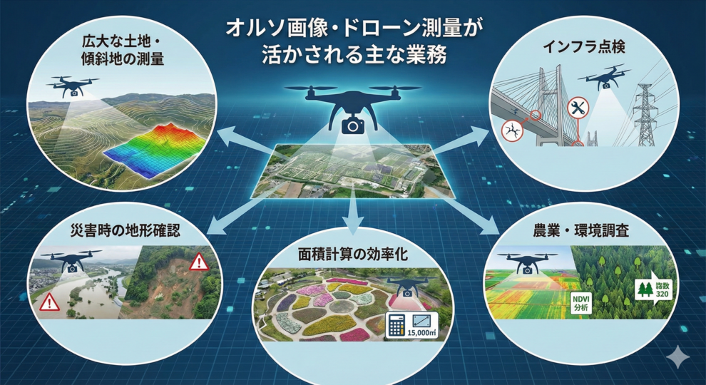 オルソ画像・ドローン測量が活かされる主な業務