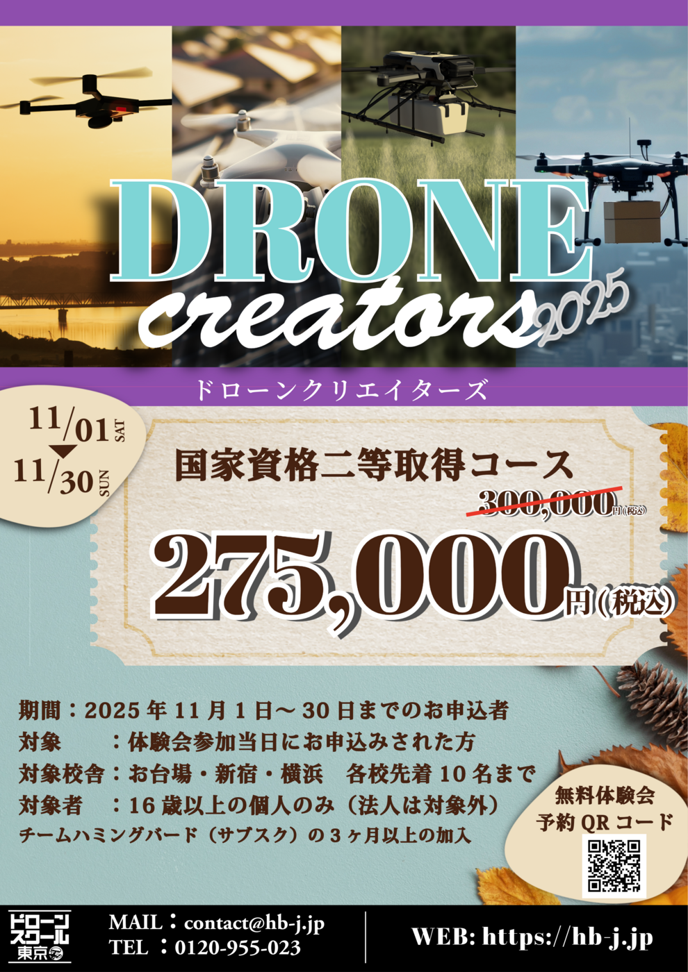 11月1日~11月30日までに国家資格の二等資格がお得に受講できる「クリエイターズキャンペーン」を開催中です!