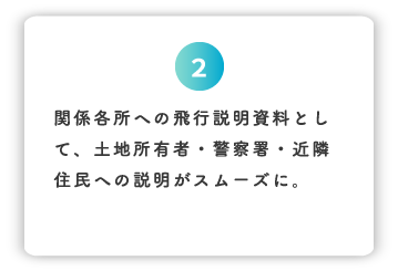 また、ドローン操縦士回転翼3級はドローンの操縦技術を正しく保有している技術証明となるため、飛行時に土地所有者や警察署、近隣住民へのご説明がスムーズに行えるようになります。また、ビジネス用途で活用の際にはクライアントへの説明にも有効となります。